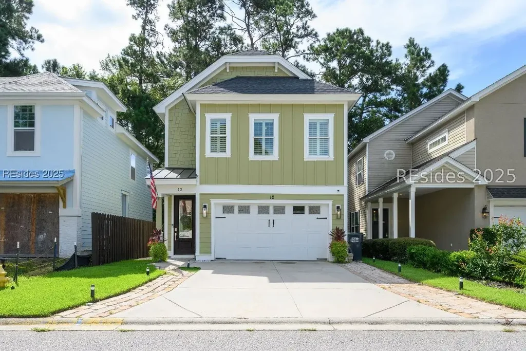 Tucked in a quaint, gated, cul-de-sac on Hilton Head's North End, this 2021, charming 4 BR | 2.5 BA, Lowcountry haven offers a cozy setting while conveniently located near dining, schools, and shops. Thoughtfully designed with coastal flair and high-end modern finishes, this home offers an open floor plan that is spacious yet inviting. Light and bright, this chef's eat-in kitchen features an abundance of counter and cabinet space, leading seamlessly into the dining area and living area, showcasing an electric fireplace surrounded with chic tongue & groove, built-ins and shelving. The master bedroom features a fully built-out, walk-in closet and a luxury ensuite bath. The fully temperature-controlled attic space is ideal for storage, or add drywall for easy additional square footage. This is not a home to miss, with no details overlooked.